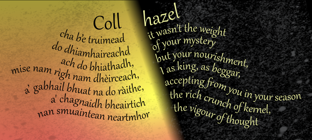 Coll/ hazel, lies at the root of many ancient stories where, to save someone from certain death, the hero must go