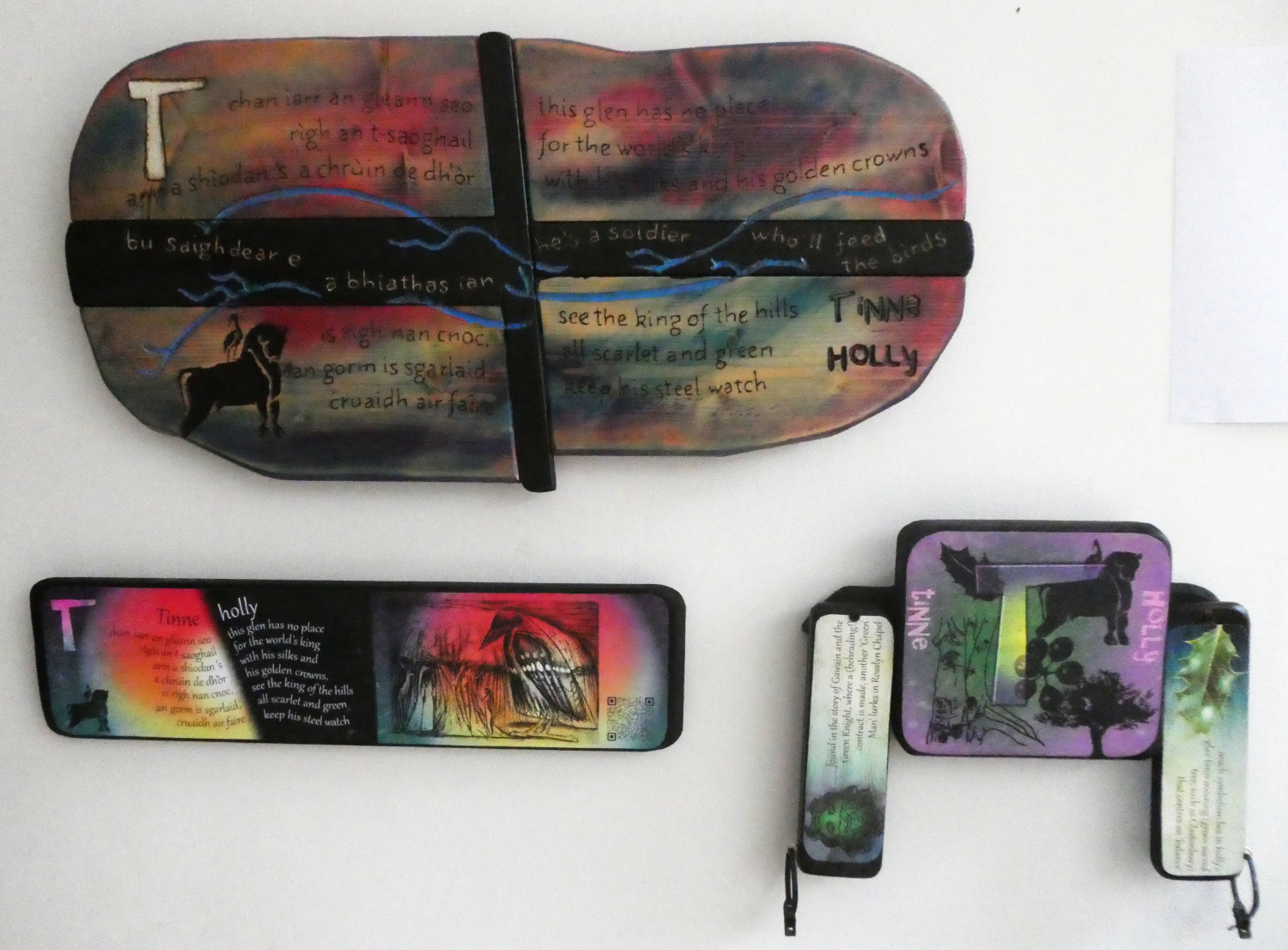 For a variety of different reasons, holly has strong association with Christian symbolism. Partly seen in the passion and crucifixion of Christ, with the tree having prickly leaves, four-lobed flowers (mirroring the points of the cross) and blood red berries, the association extends further than this. The last letter of the Hebrew alphabet, the tau (Tav) stands for 'truth', a T-shaped cross and the letter T re-occurs in the gaelic tarbh (pronounced the same and meaning bull), and Tannus, a gaulish thunder god armed with triple thunder bolt.
